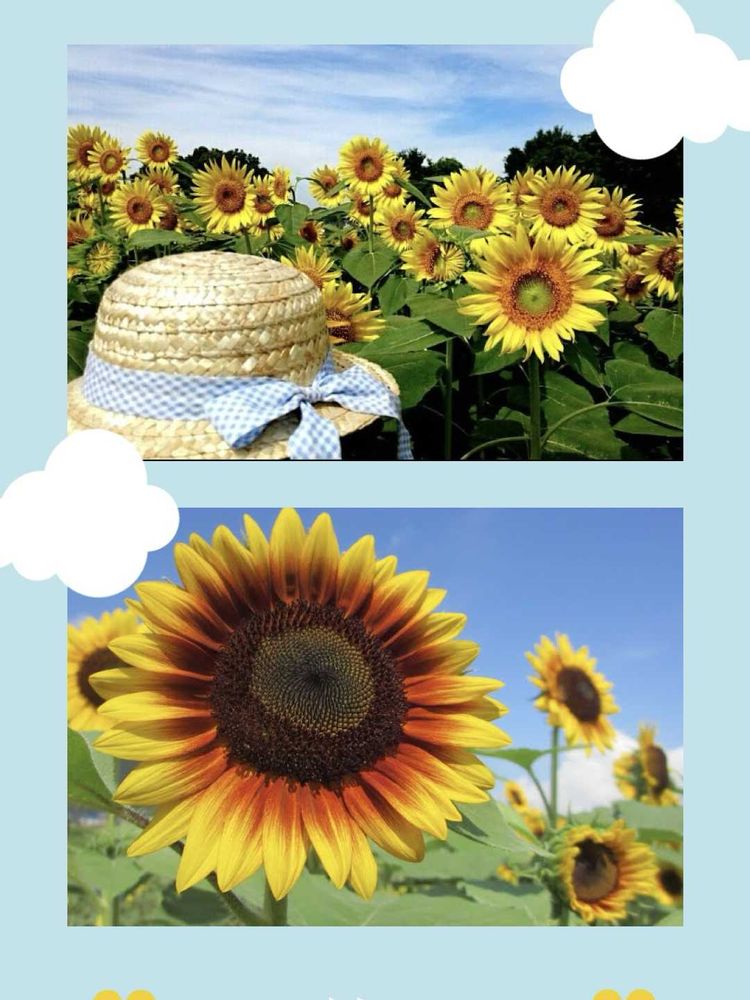 ひまわりと麦わら帽子の取り合わせは、演出が上手いですねぇ(*^^*)👏👏