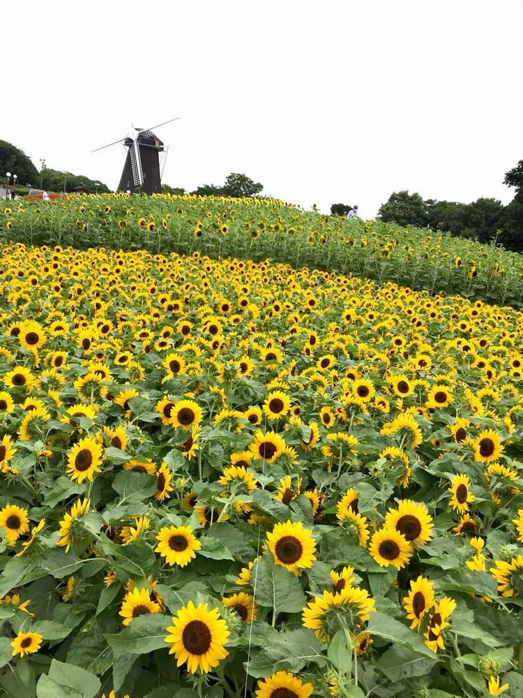 鶴見緑地の風車近くでたくさんのひまわり🌻が植えられているんですね😄