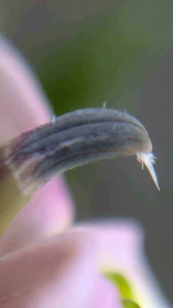 火曜はマクロの発表会🏷なので、もう少し寄ってみると、葯頭の先から毛が出ているのが見える👀まだ柱頭は出ていない雄性期の状態だ♬
