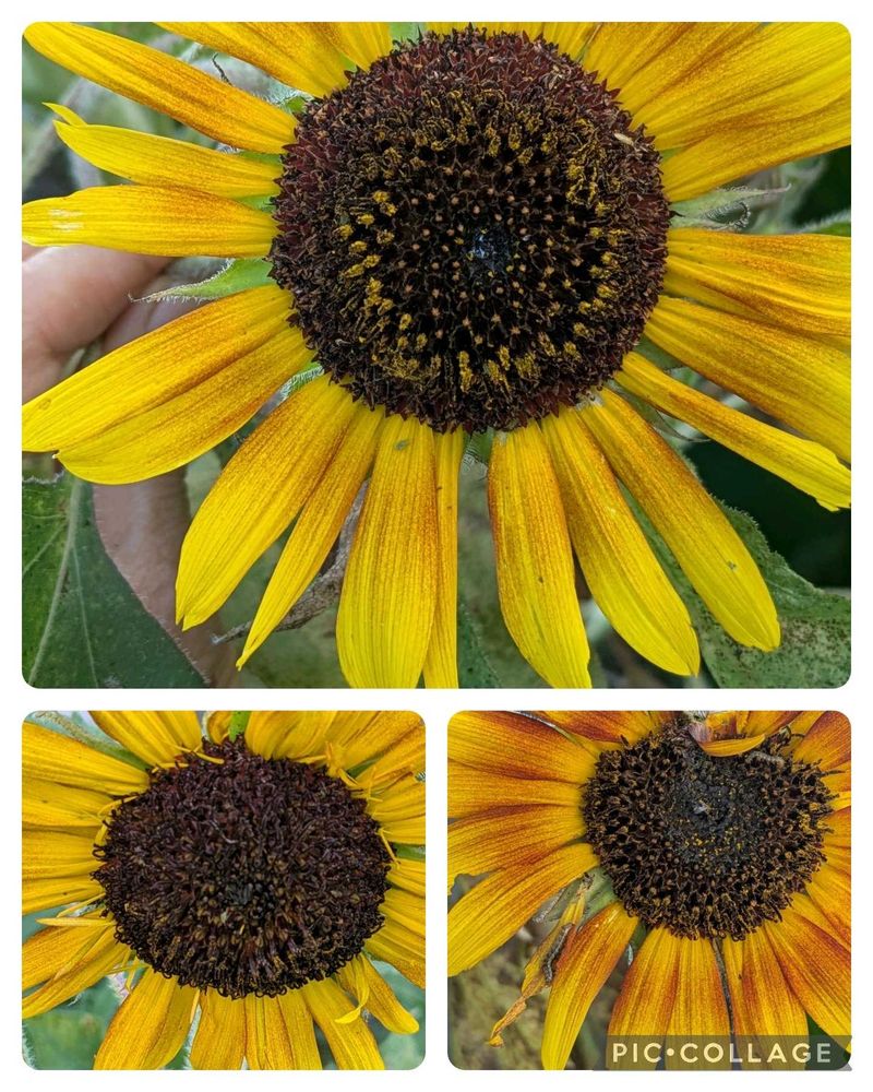 こぼれ種ヒマワリ、さすがに雨が、少なくて、キレイに咲いてません。
