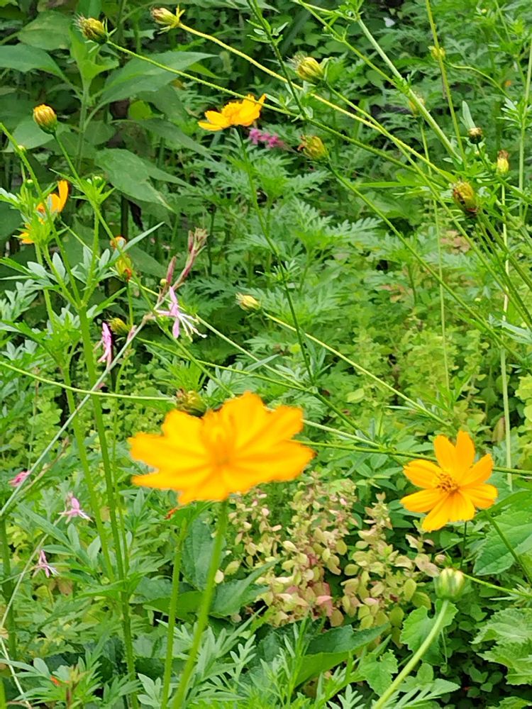 私はレモンイエローコスモスが増やしたいのに、どうしてもキバナコスモスが優勢で、レモンイエローコスモスは1〜2輪しか咲いてくれません😓