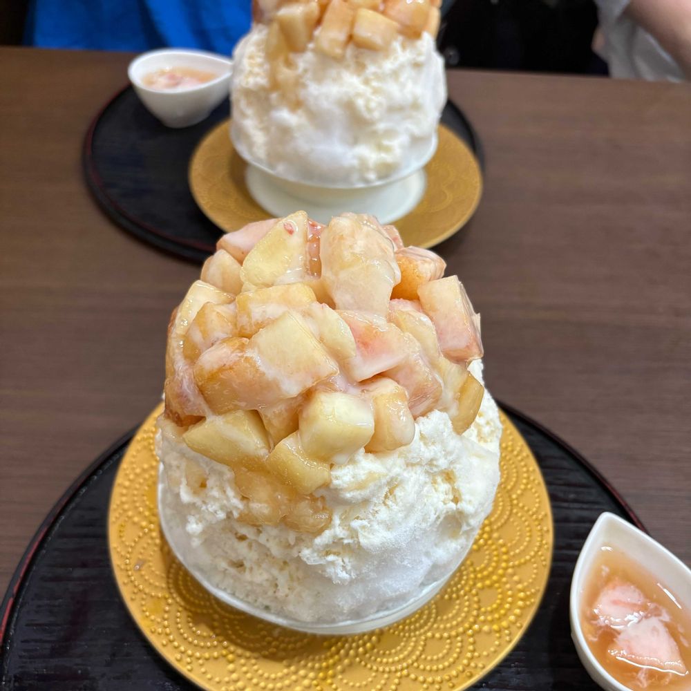 ふわふわかき氷🍧🥄たっぷりの桃🍑
