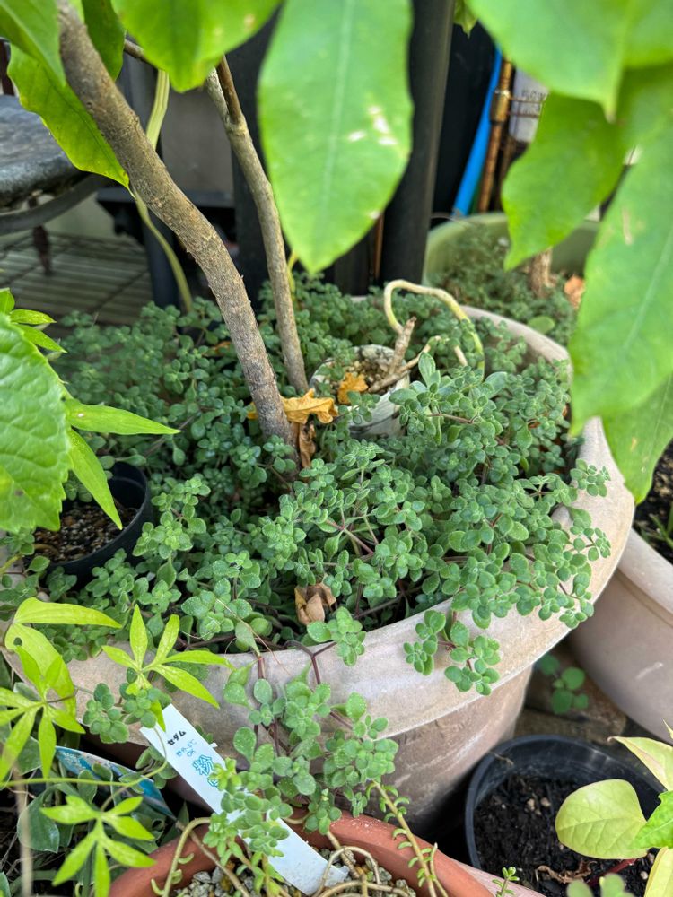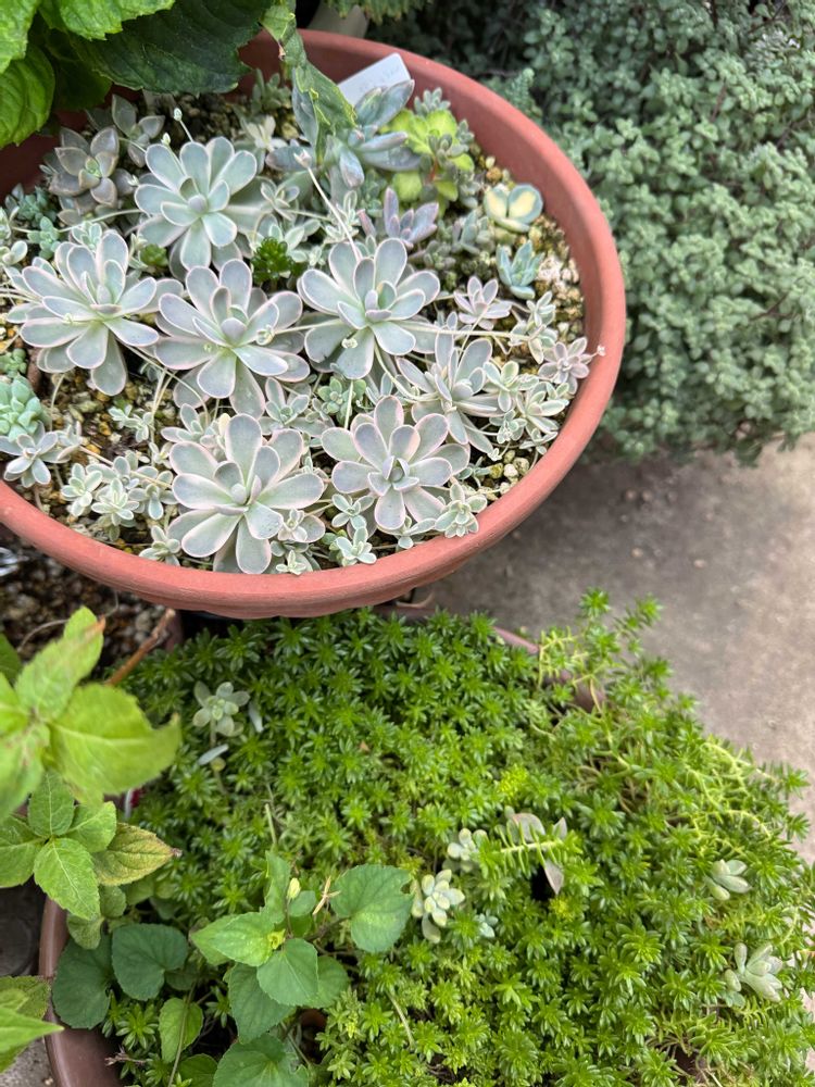 ①45さんの鏡花さんと手前は万年草、奥はブロウメアナ
