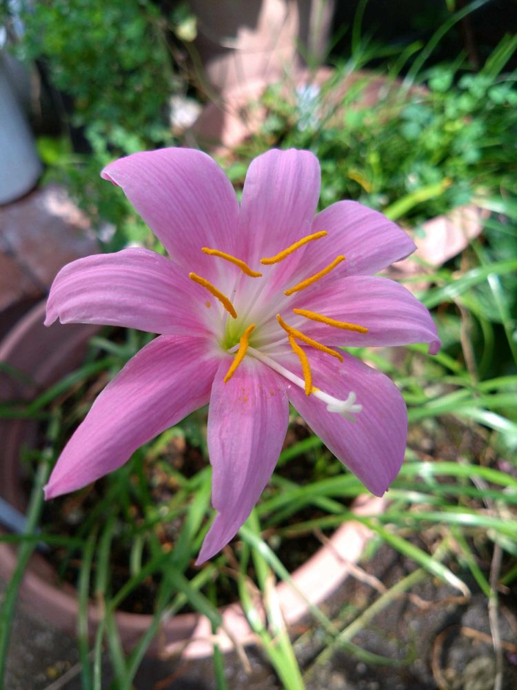 ④ピンクのゼフィランサス ポツポツ3輪目😅 どうして一緒に咲かないんだろうねぇ〜😅