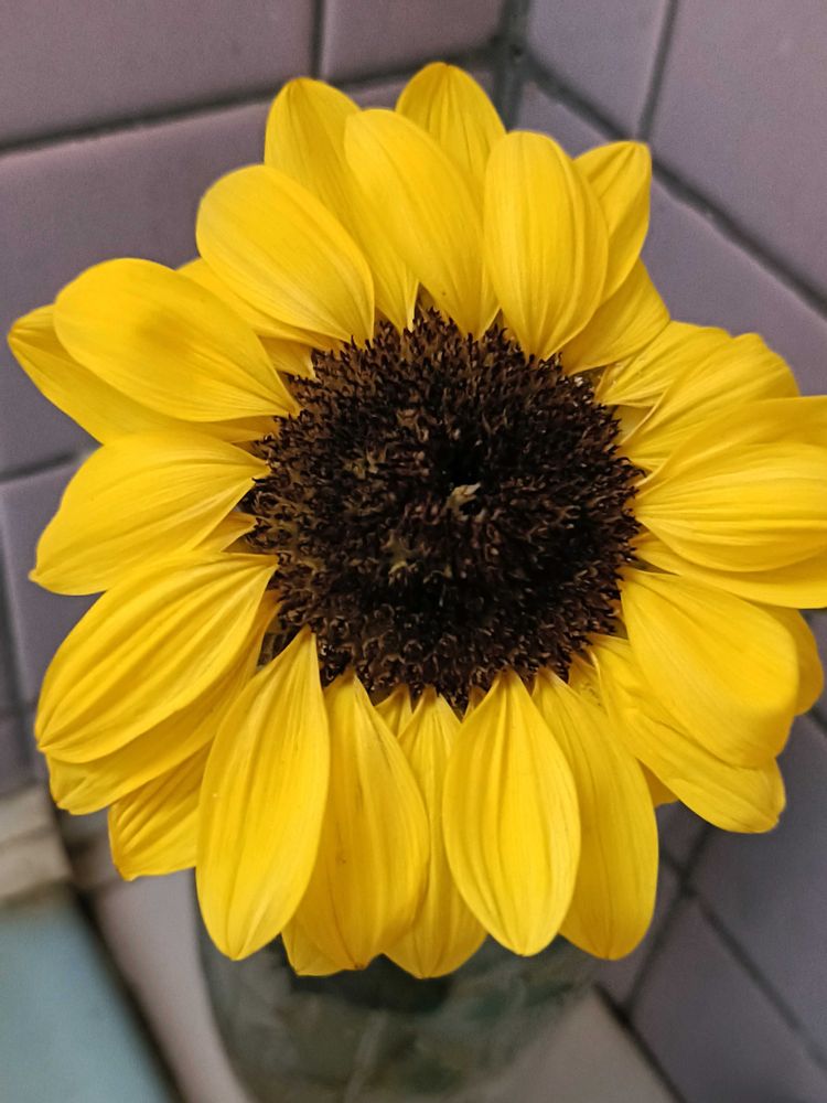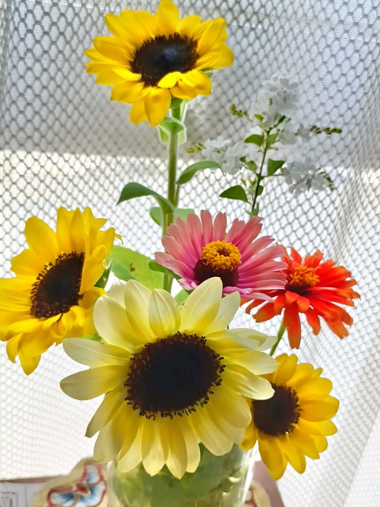 5枚目は、前にも投稿した同じpic.ですが、カットしたおかげで、ミニひまわりを長く楽しめて、改めて「ミニひまわりって、かわいい😍」