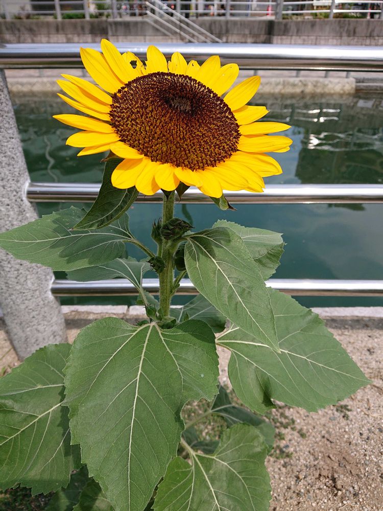 川沿いの花壇のヒマワリ🌻🌻