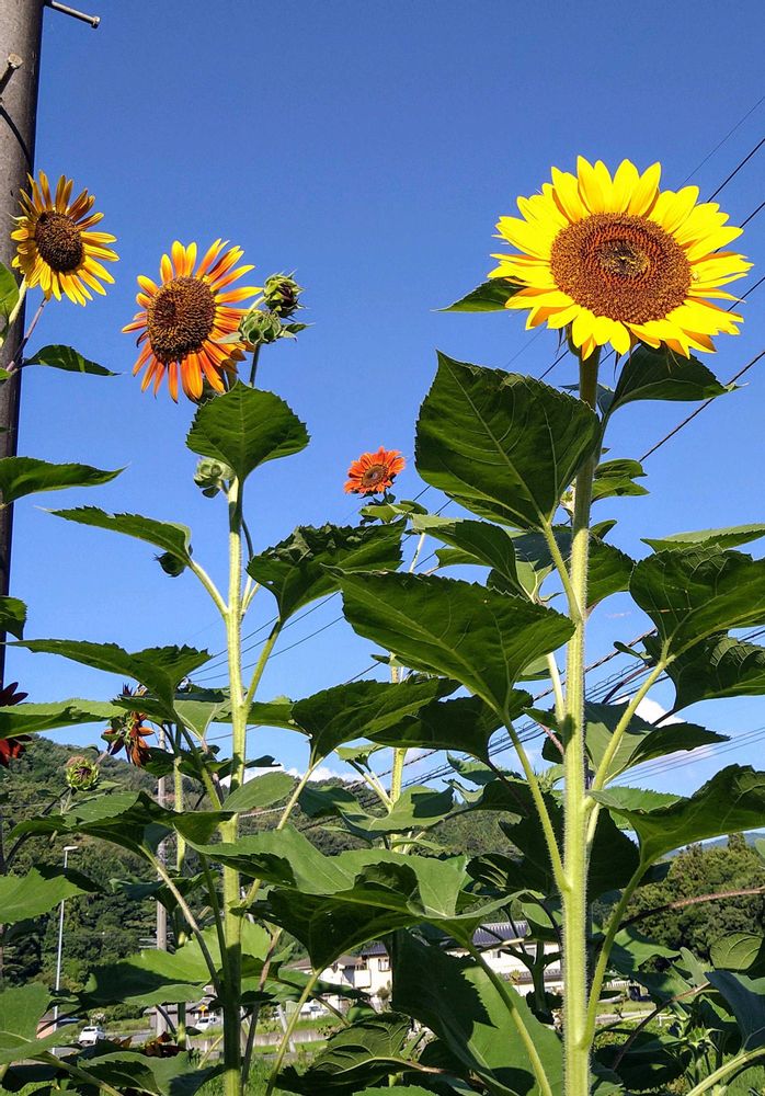 猛暑でもぐんぐん伸びて2m以上に🌻