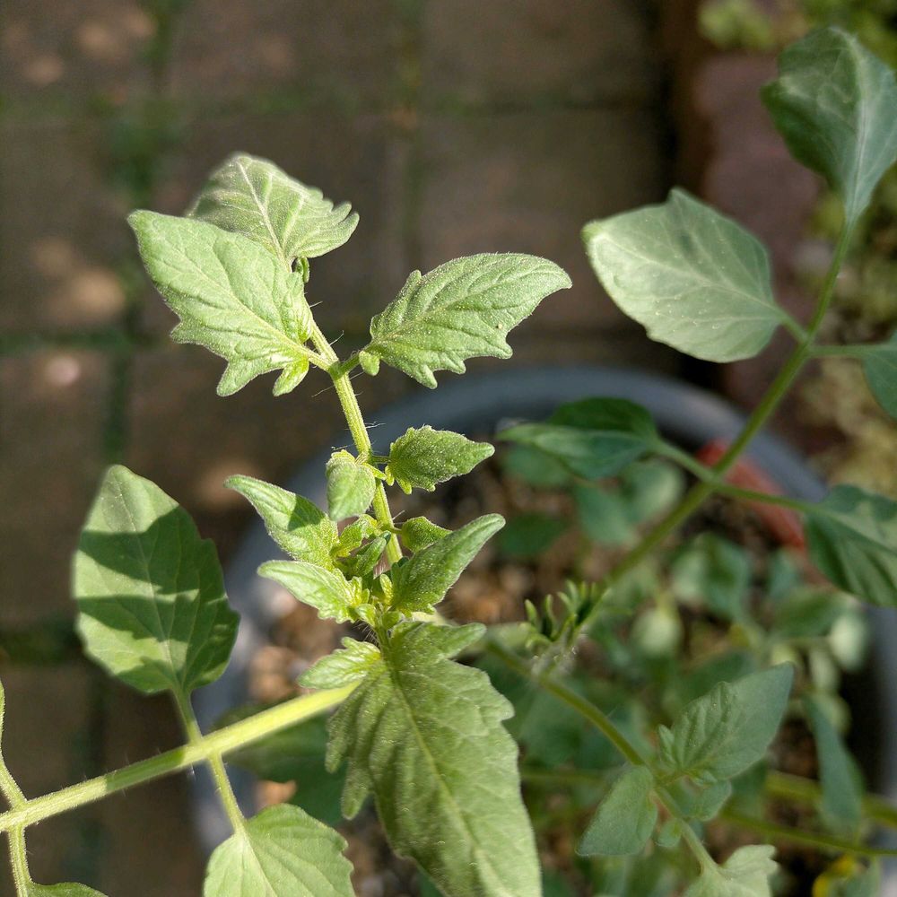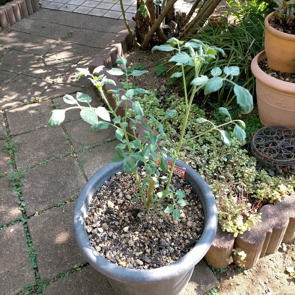 【5枚目】この通り、ミニトマトにはまだ花芽は見えません。早く咲いてくれないかなー😚♫
