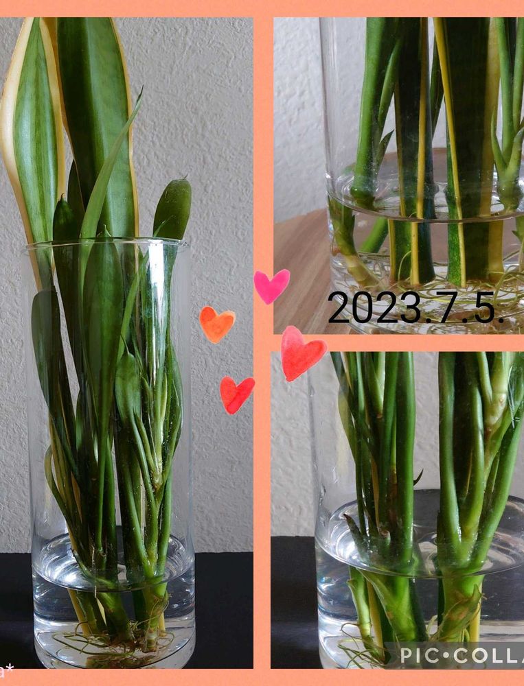 コロナ禍のとき、サンスベリアの葉挿しをやって2枚だけ水耕栽培にしました。
