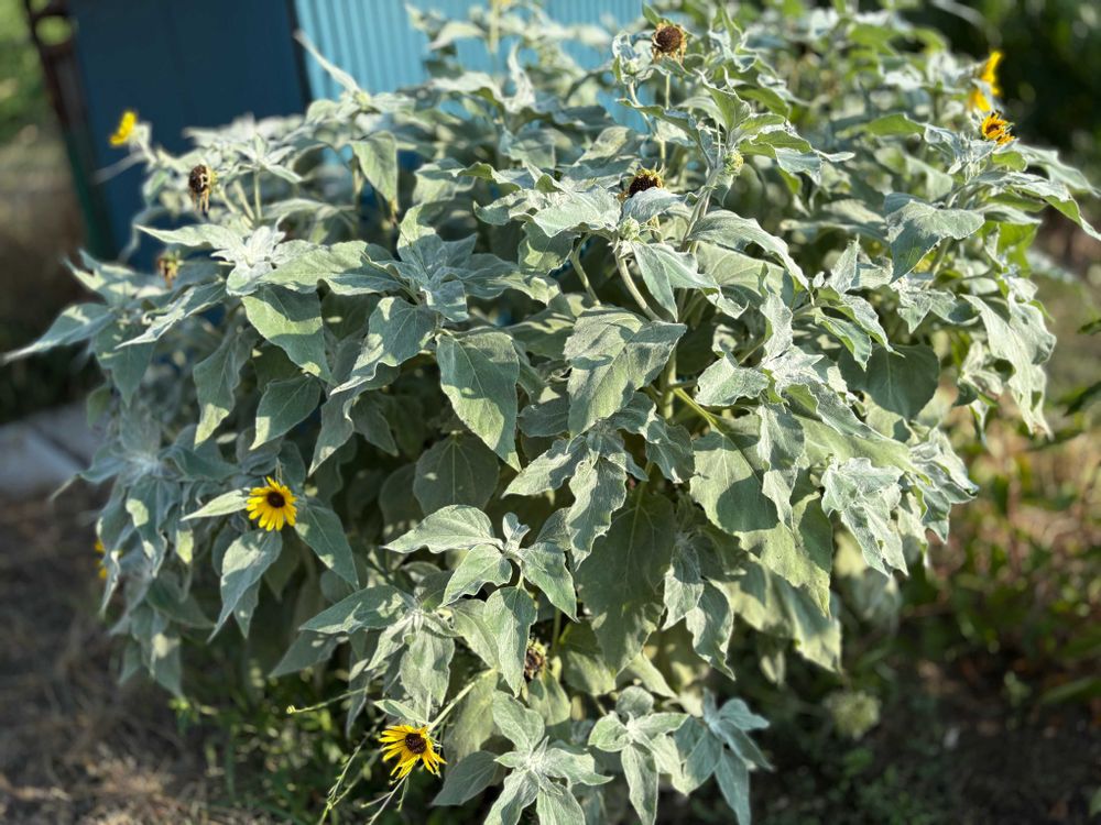 去年花友さんから貰った苗で沢山咲いたシルバーリーフのひまわり