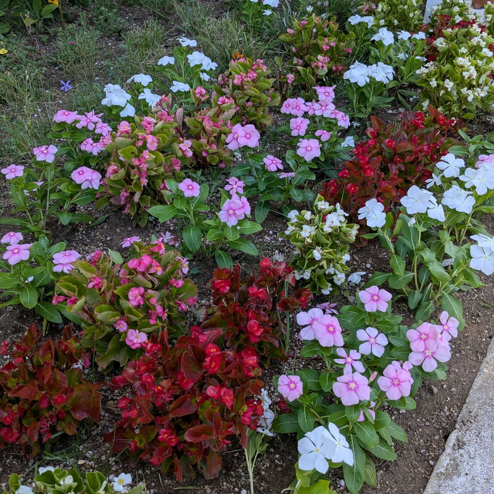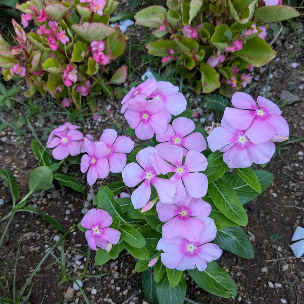ニチニチソウと、すみれちゃんです😄そして、花好きのグループの花壇です😄暑くても、草を取ったり、花を植えたり、そんな、グループの花壇が、いっぱいあります😄世界平和に、つながる行動ですよね😄