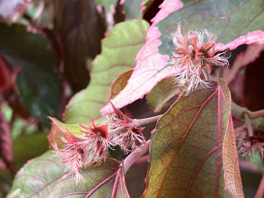 葉っぱは好きでよく眺めながら通るけど、花もこんなに咲くんだね。