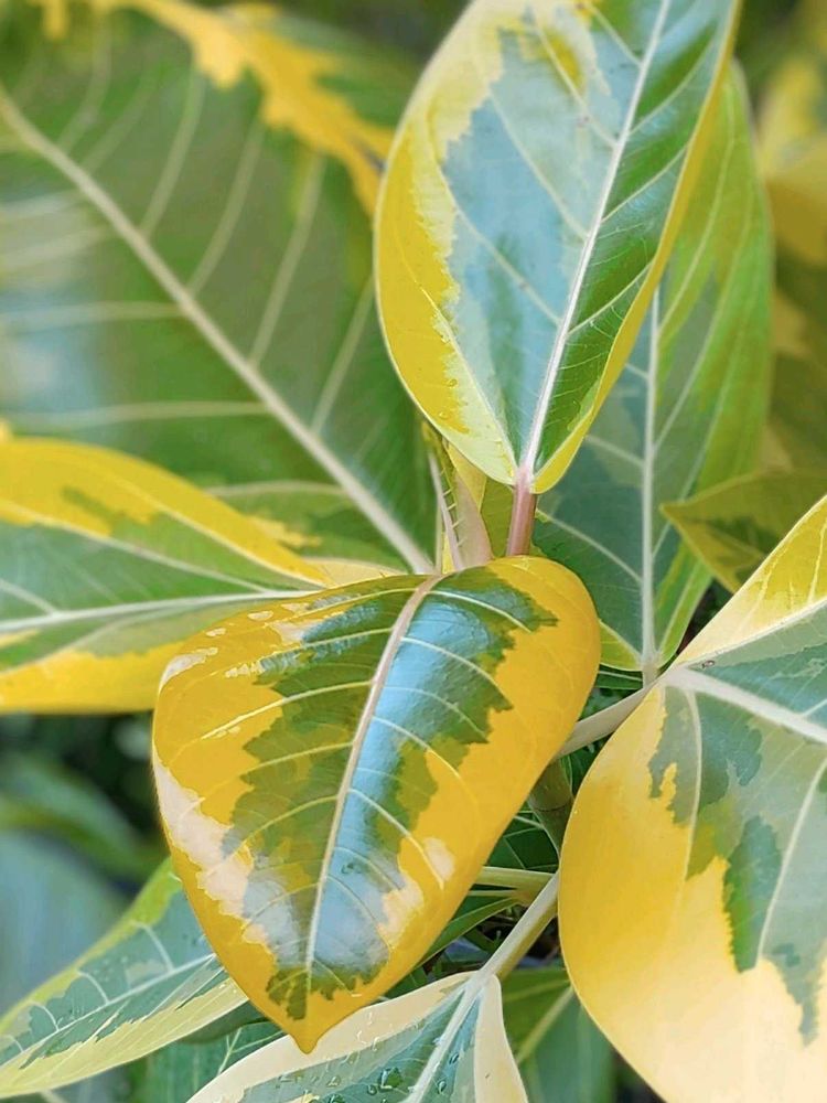 2025.8月に某サイトで購入した【アロカシア チャイ】の 突然変異?なんだろう 購入時、元々有った葉を(1枚目の葉)として、 下から新たな葉が出てきてる状態で到着しました(2枚目の葉) こちらに来て初めて出てきた葉に異変が。。 育て始めて出てきた初めての3枚目、4枚目 (途中から、斑1、斑2、、と続きます) どこまでこの謎の斑入葉が続くのか、 いや止まるのか……記録していきます