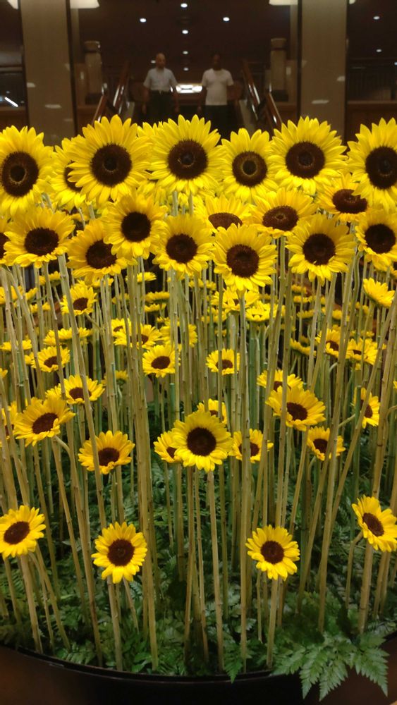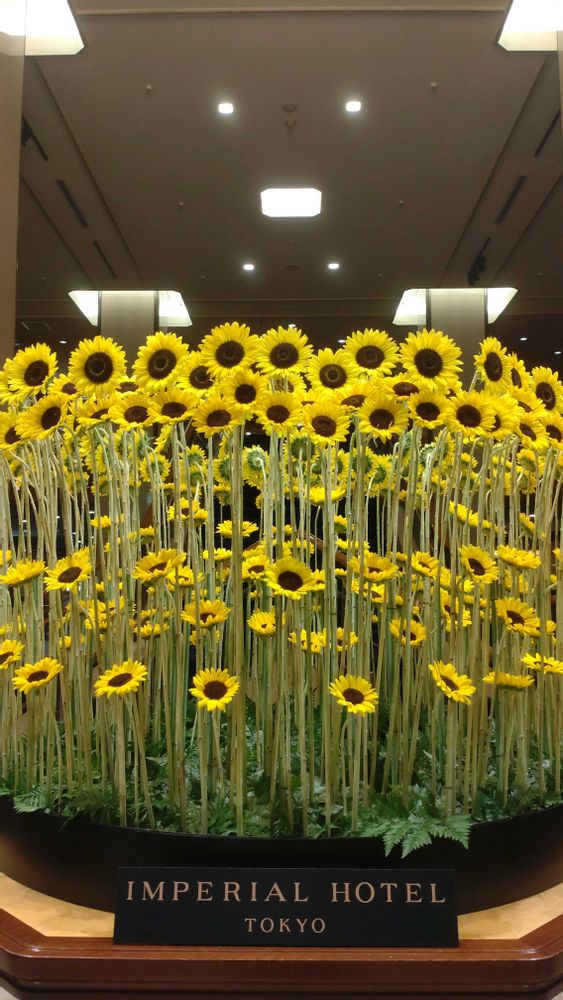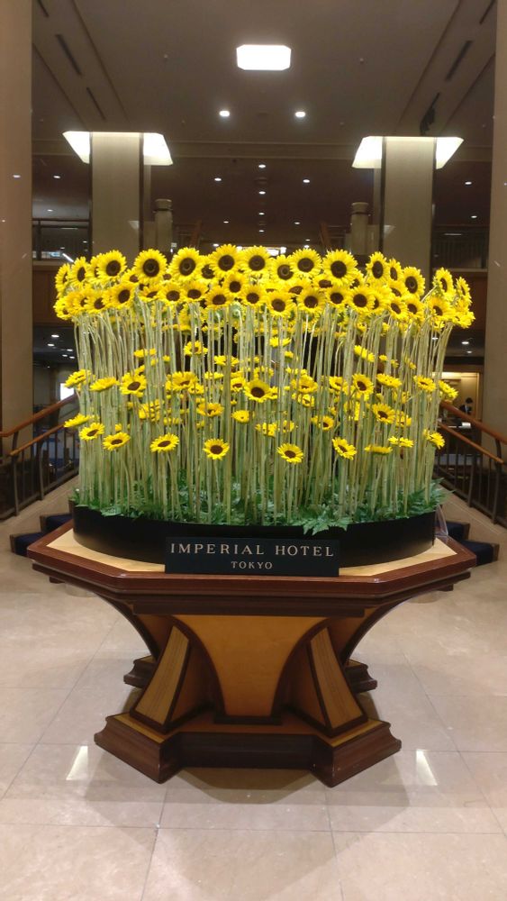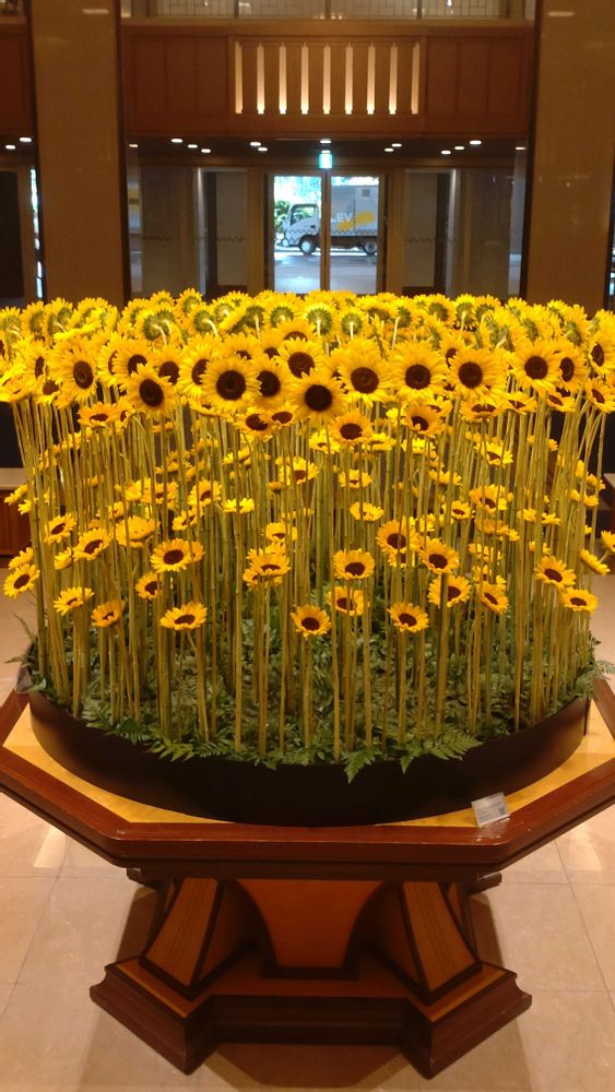 昨年8月、上京した友人とお茶しに行った時も同じ向日葵のアレンジメントを見ました。