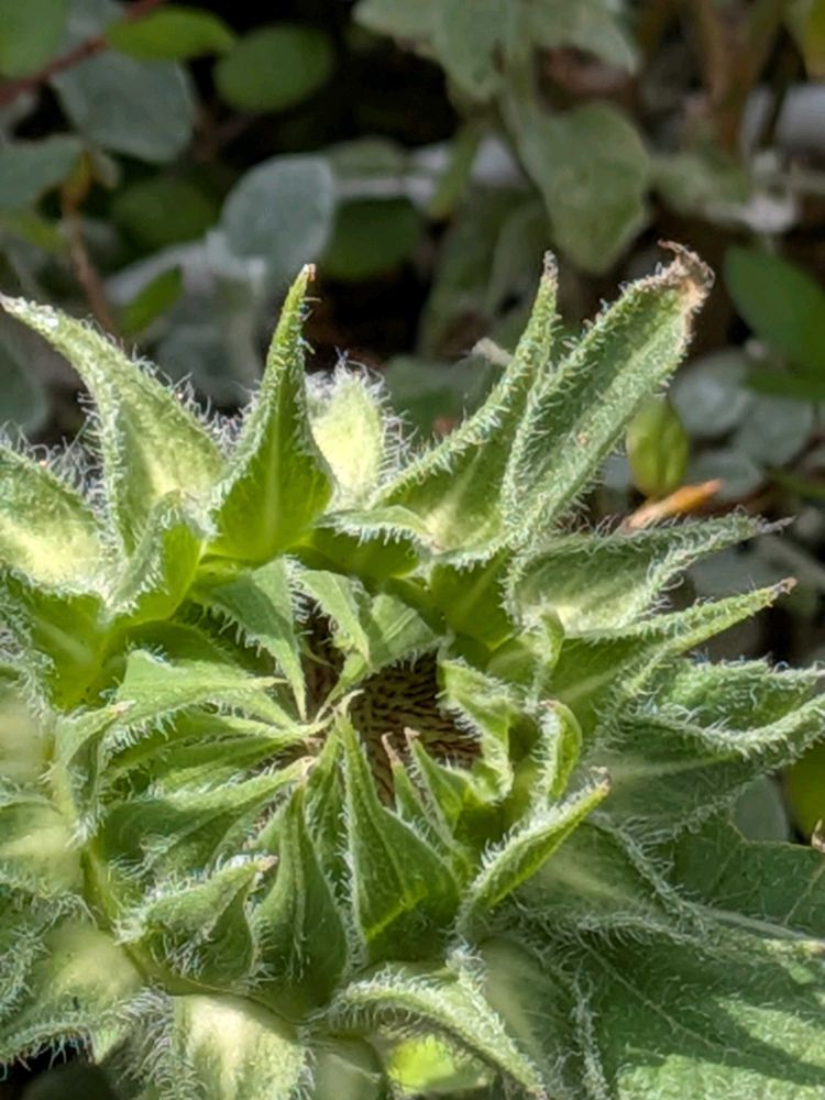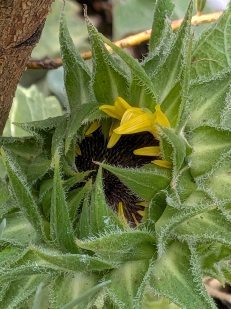 我が家の庭の🌻は葉っぱがチリチリに焼けても、蕾から黄色いお顔が出てきたところ~🫨🌿