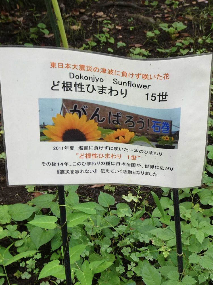 「東日本大震災の津波に負けず咲いた花 ど根性ひまわり15世