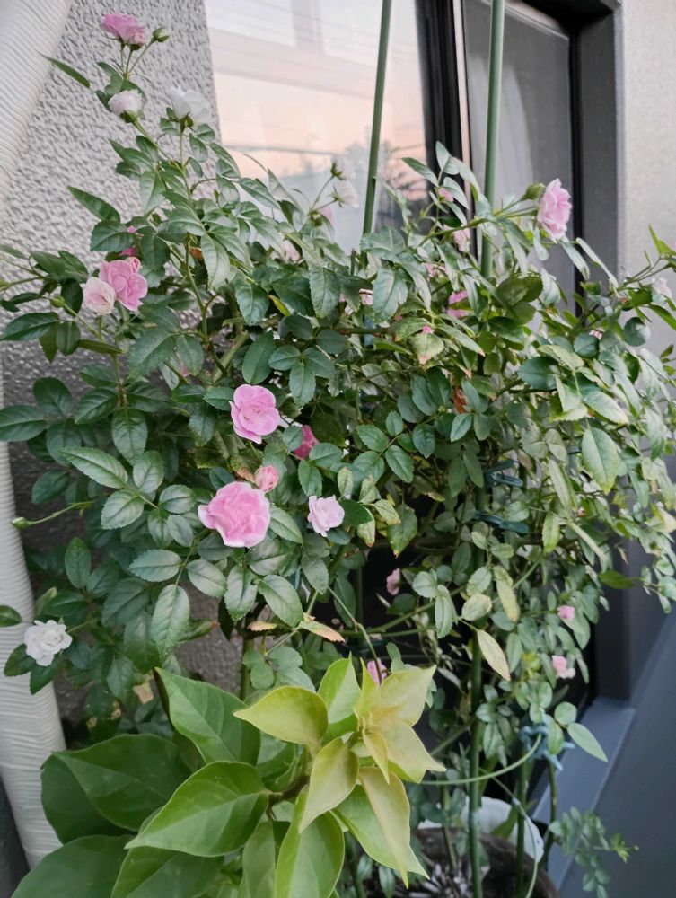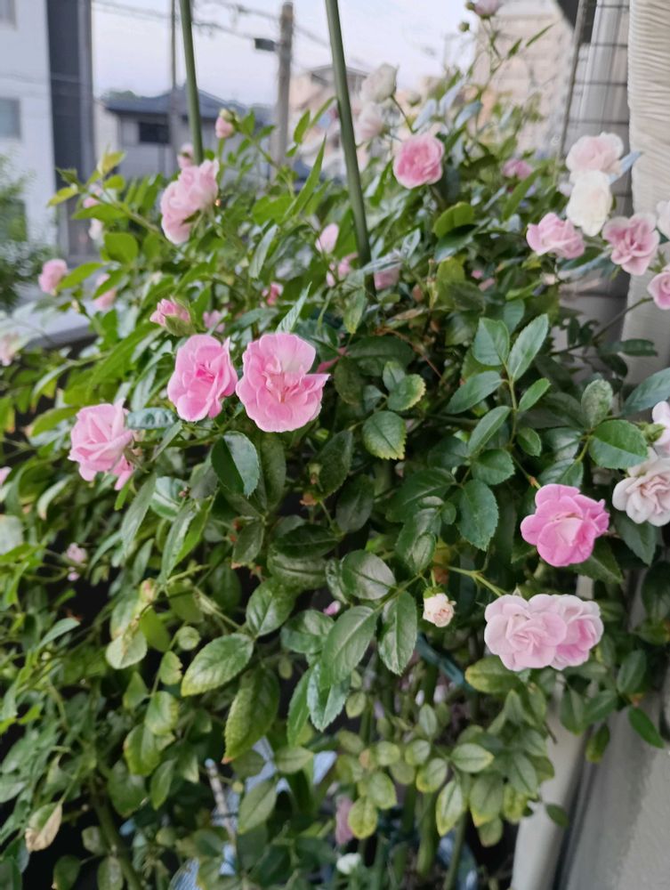 ミニバラがたくさん咲いて、可愛いです。🩷🌿🩷🌿🩷