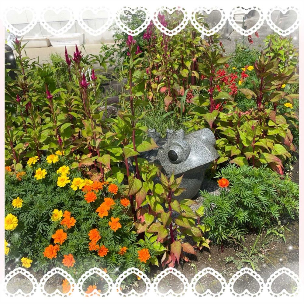 ③花壇のお花に埋もれる🐸ちゃんチラリ😆♬