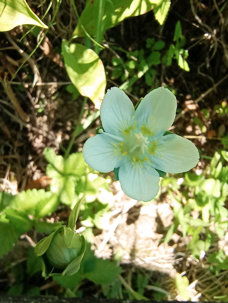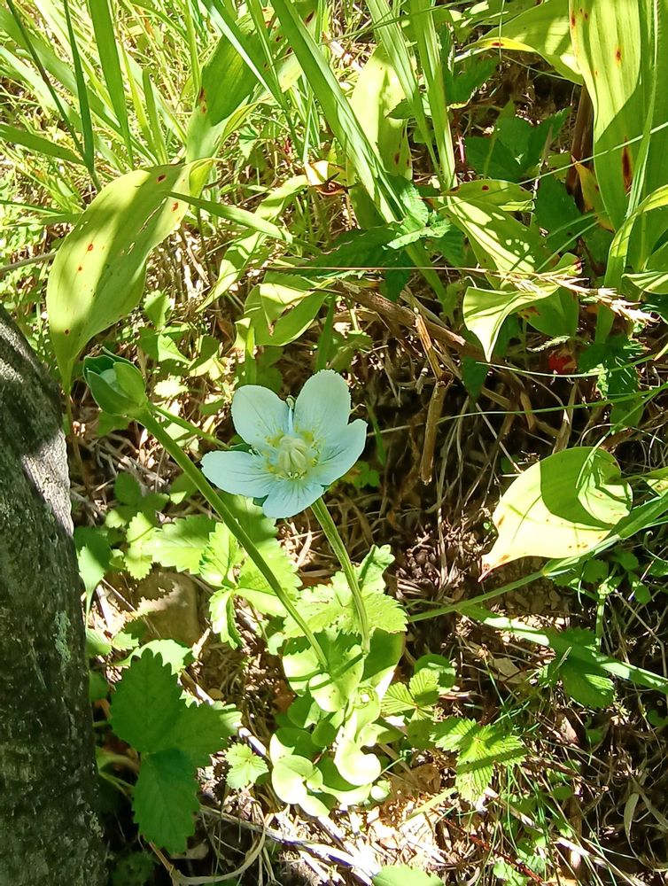 夏から秋、高さ10~40cmの数本の花茎を直立し、1枚の葉と1個の花をつける。和名は、「梅鉢草」の意味で、花の形が梅鉢の紋に似ていることから。