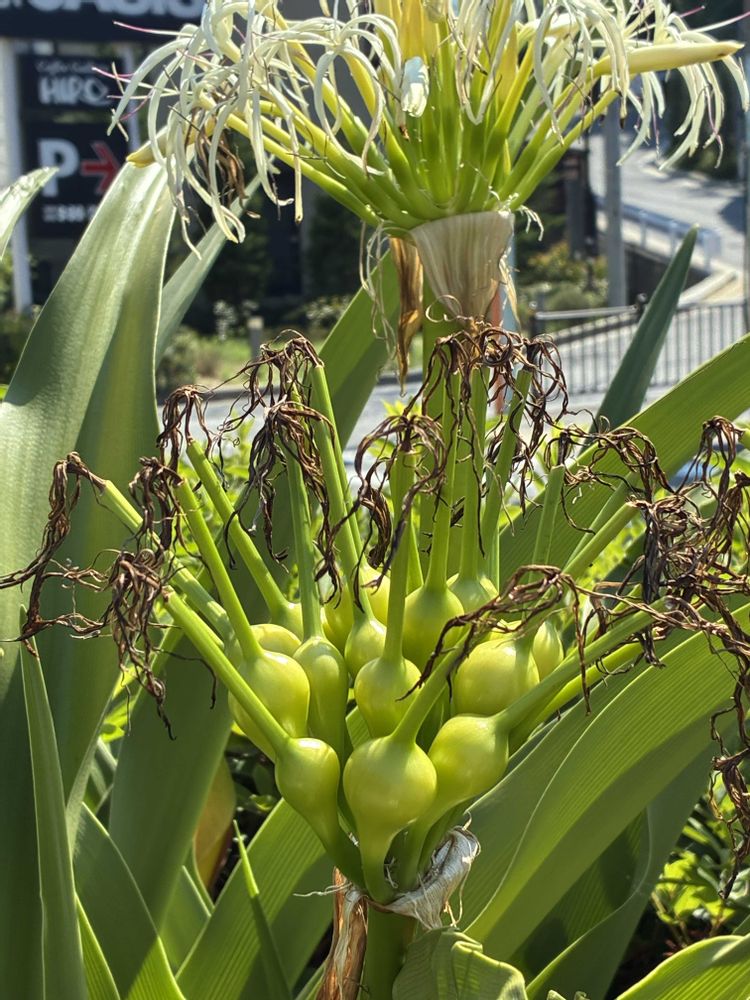 先日投稿したハマユウの花に、今年も実ができました❣️