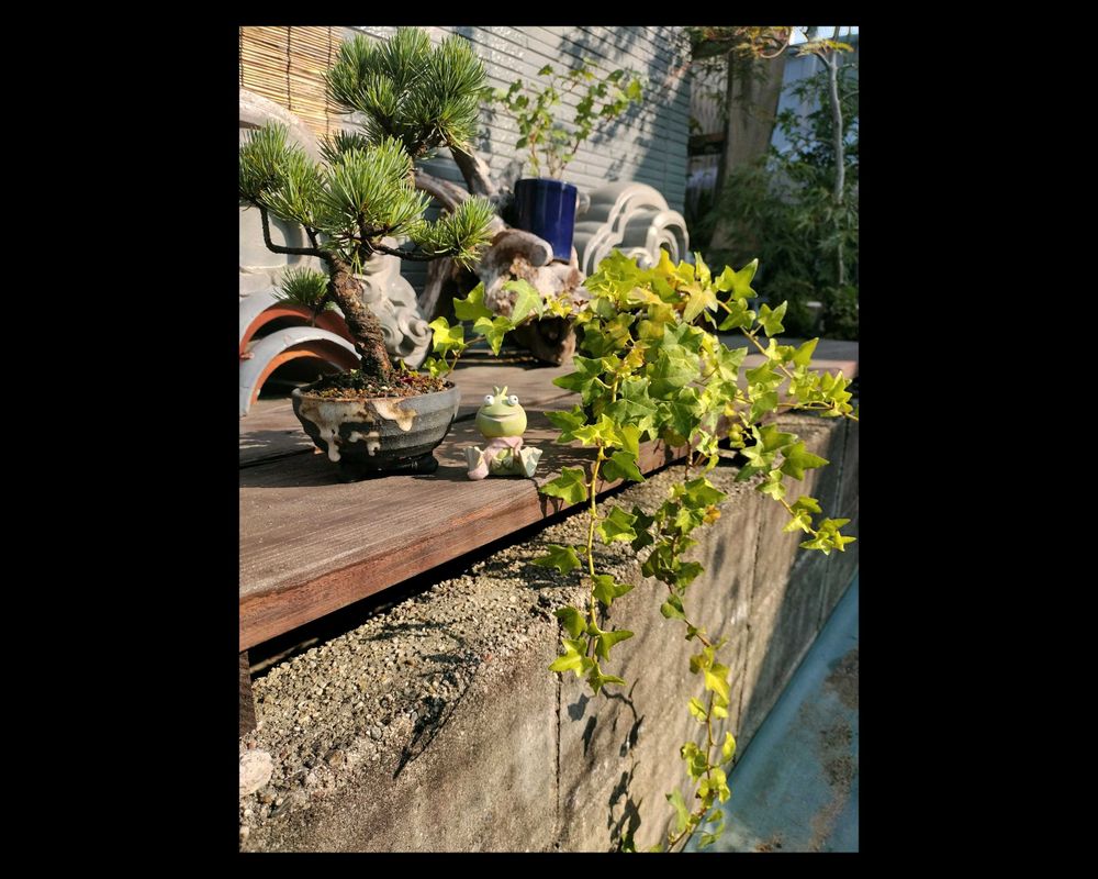 ①五葉松(ゴヨウマツ 左)と西洋木蔦(セイヨウキヅタ ヘデラ 右)