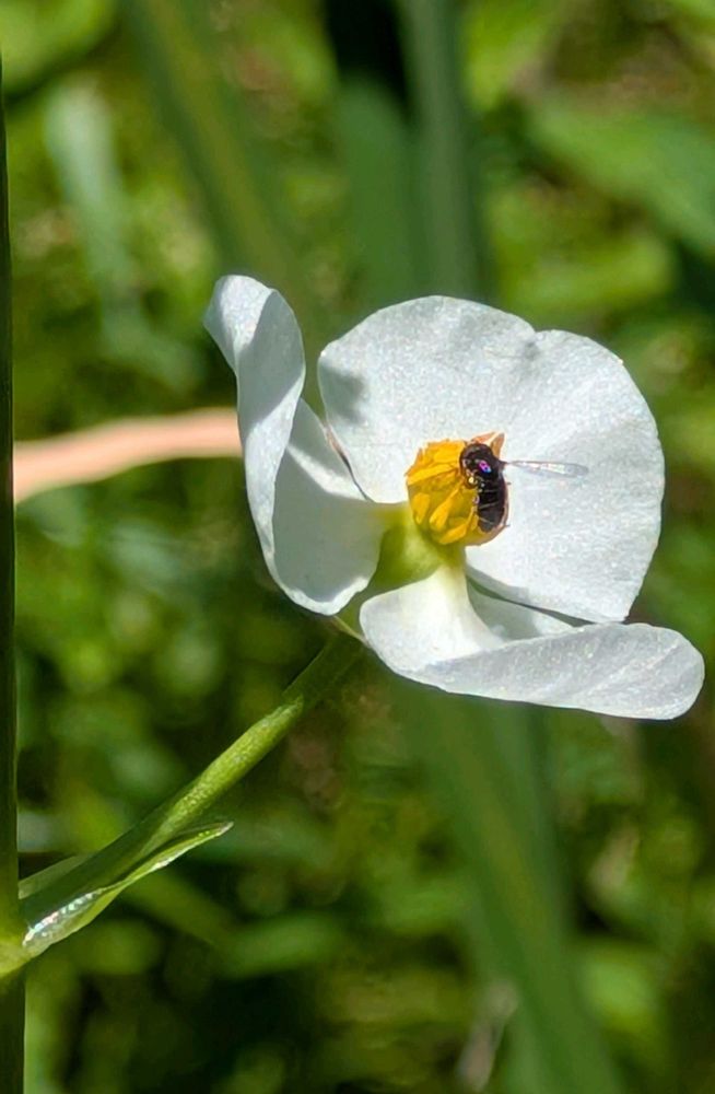 オモダカと違って、花茎は葉よりも高く伸びて見つけやすい♡ 雌雄同株異花で、こちらは黄色い葯が目立つ雄花♡