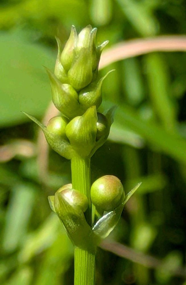 花弁が落ちて分かりにくいけれど、3輪生といって、3つずつ付く◎下から順に咲いていき、茎を取り巻く蕾は、すべて雄花だ♡