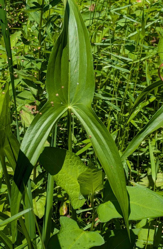 葉の形は矢じり型、オモダカの場合は上側の裂片が下側の2枚より短いのが違いやね▲ 葉の幅には変異があって、広いものもあるからバランスを見ています💚