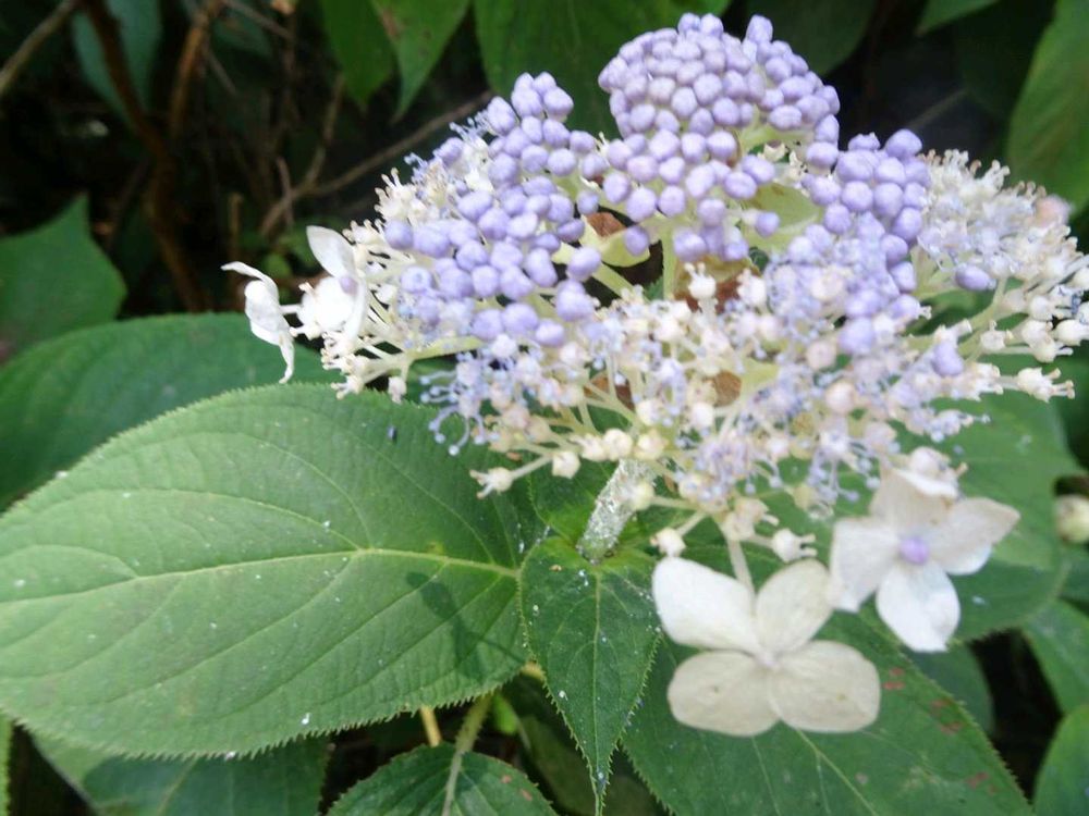 タマアジサイ、可愛いですね~蕾の時のまん丸の玉の時も好きですが、ほどけかけて紫陽花らしい両性花が覗いて来たころが一番可愛いかも~ヾ(≧∇≦)ノ