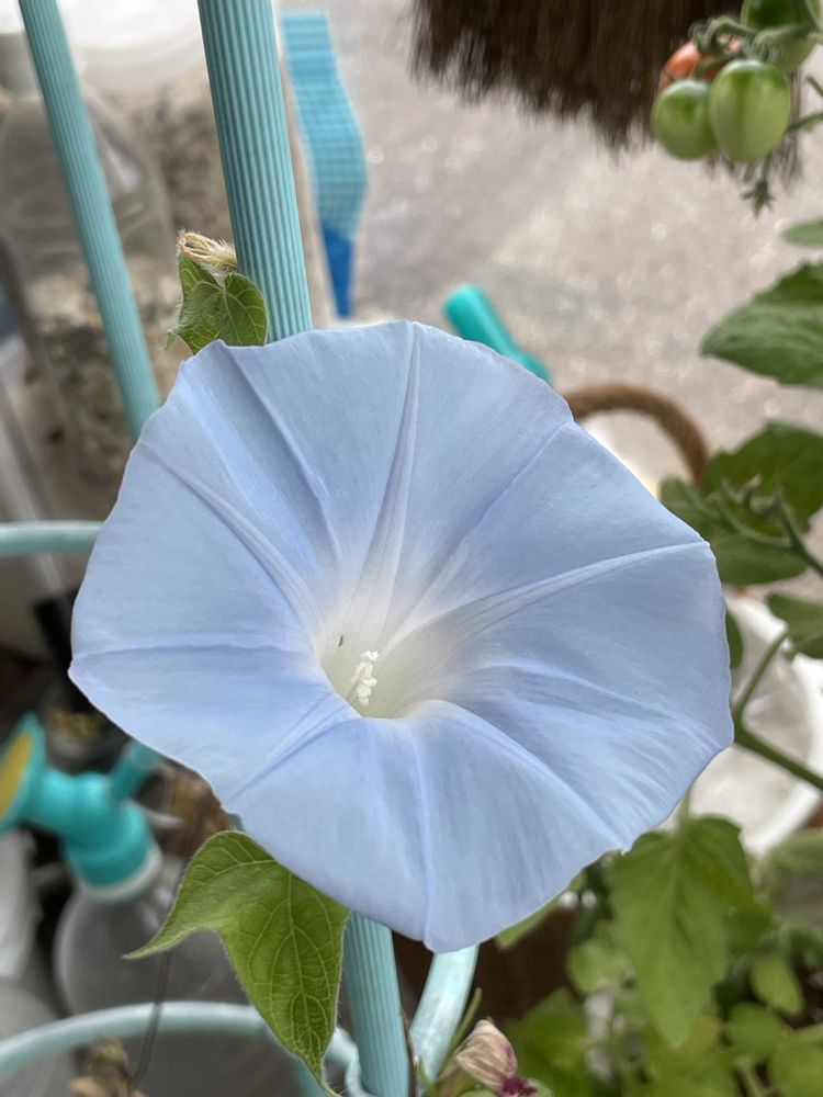 水色の息子さんの朝顔、今年も無事咲いたんですね。よかった良かった。