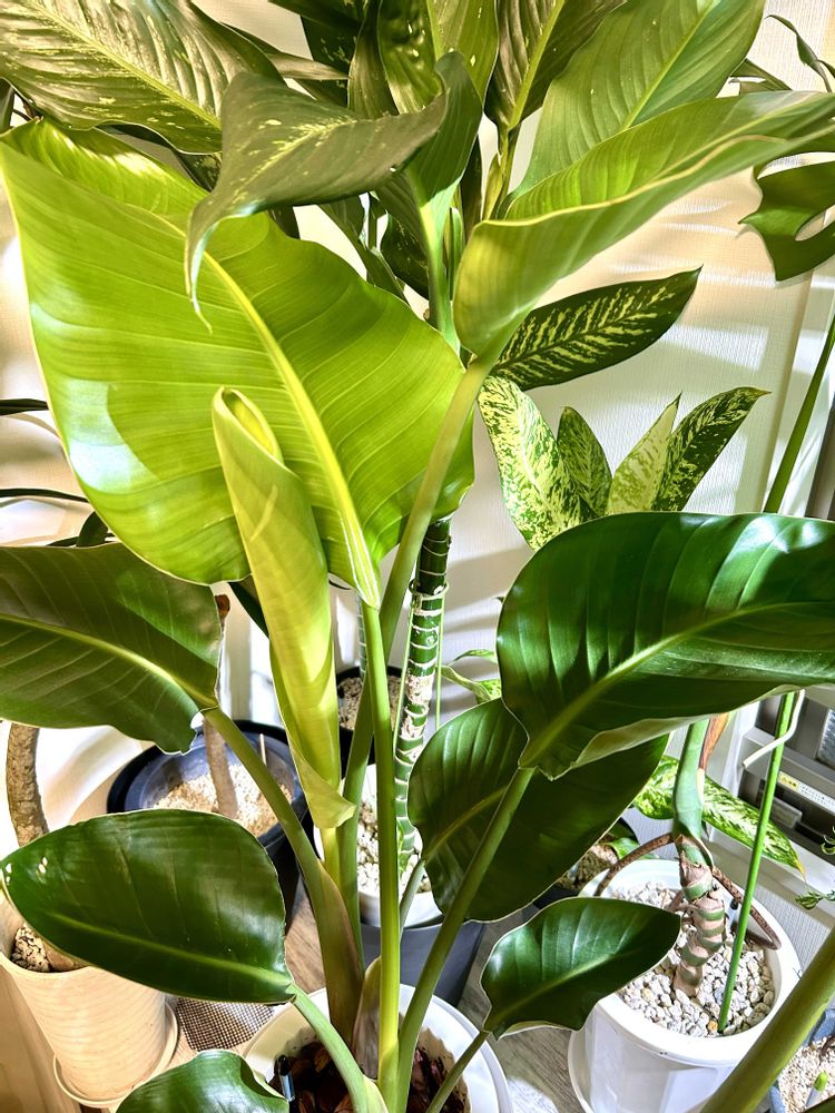 大きくなりすぎて、花が咲かないので、調べてみたんですが、ストレリチアとは違い、旅人の木?ニコライ(オーガスタ)?ではないかと、コメントしてます。