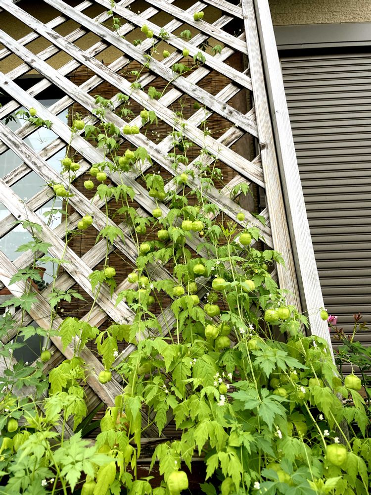 フウセンカズラが頑張って伸びてます。すこーし涼しげですか🎐🤭