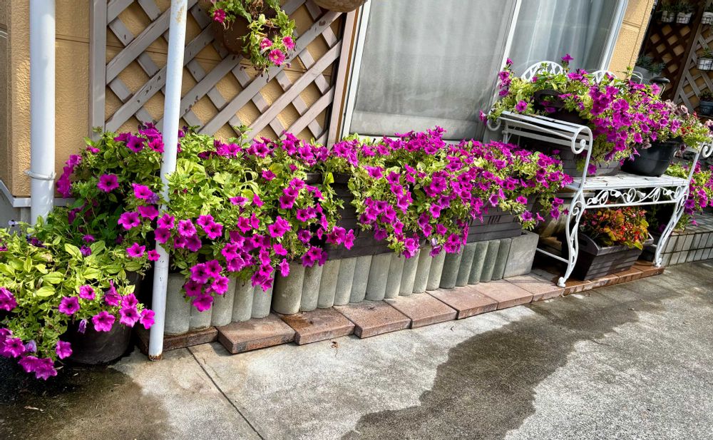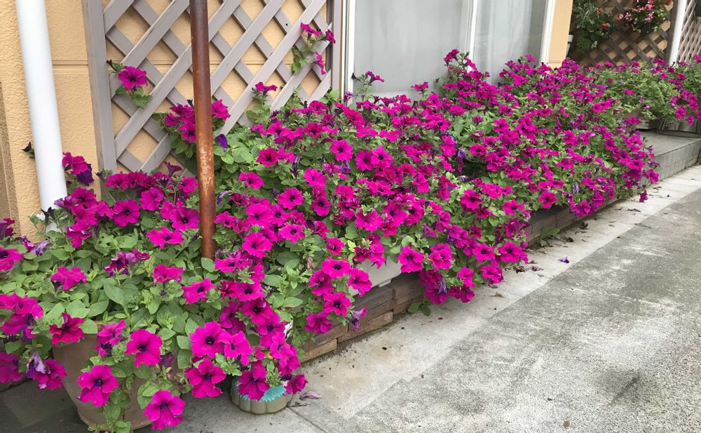 他の種類もチョコチョコと挟んで植えてみたりしているのですが、結局サフィニアパープルが1番しっくりときて今日に至ります。😅