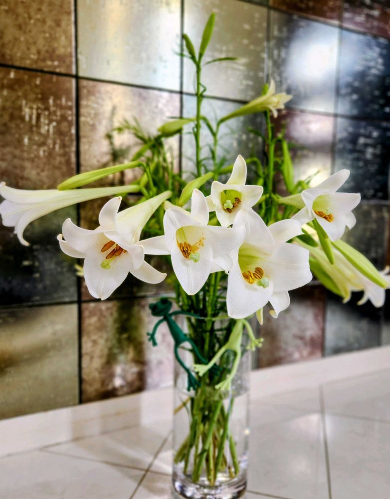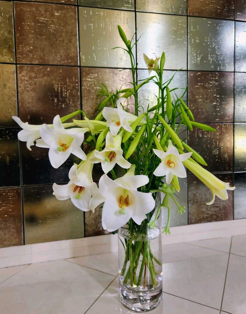 そんな訳で庭の新鉄砲百合の蕾を切ました。