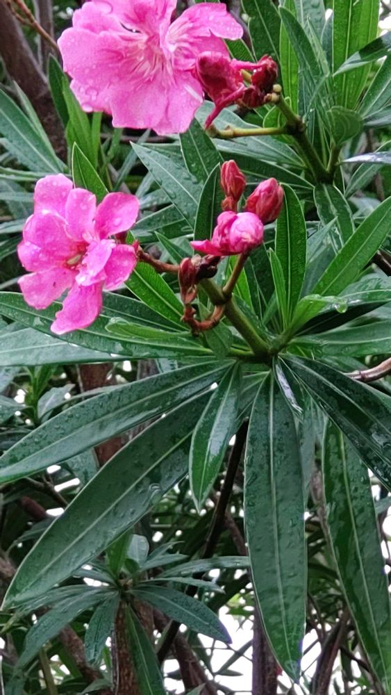 暑くても綺麗に咲いてる💜今日のお花キョウチクトウ🩷ジュズサンゴも♥️