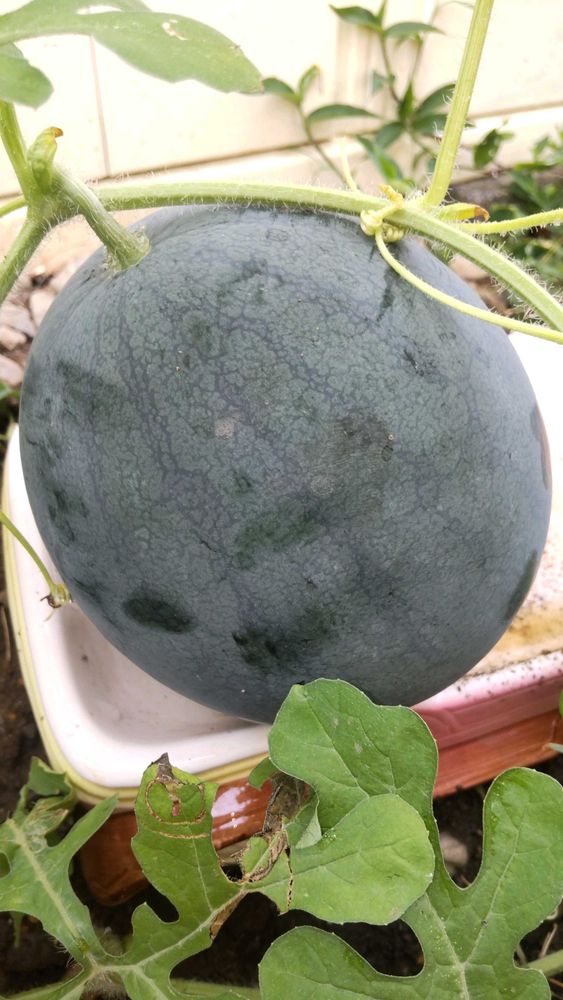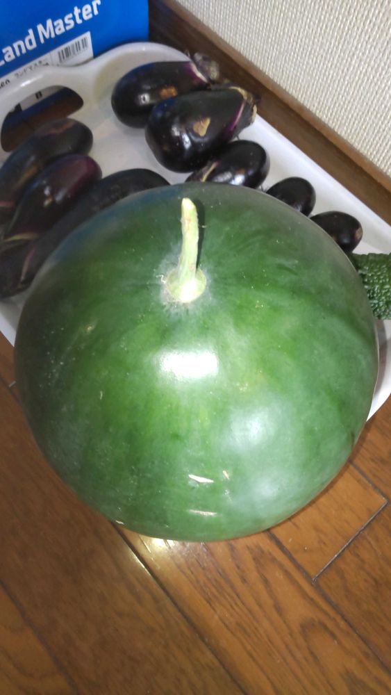 7月20日に投稿したスイカ🍉のその後です✨1株から〜4個着いています。9月10日収穫を目標にお世話をします。5枚目は今日採ったスイカ🍉で立体栽培のものです。😃☺️🥰