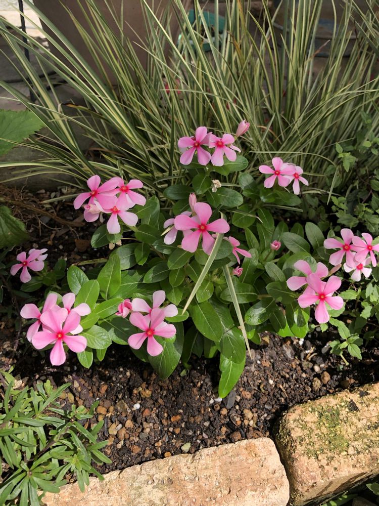 ①日々草💕ミニ花壇に地植えしました*:.*🍃暑さに負けず可愛いく咲いています✨