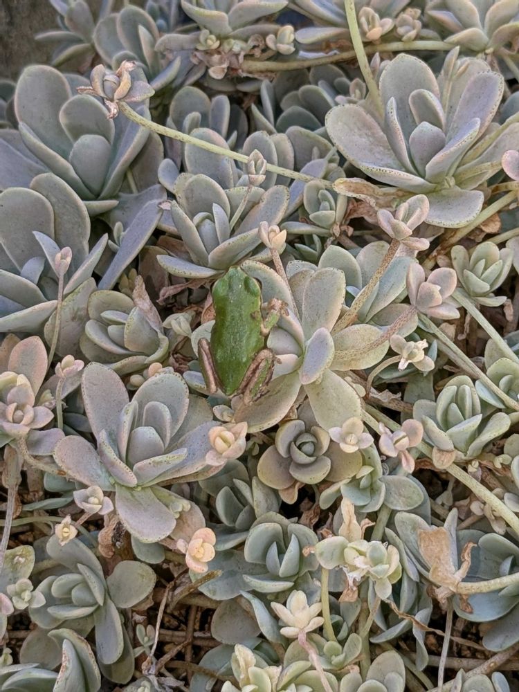 ②子持ち蓮華錦さん❣️リアルカエル🐸ちゃんを探してセダムをツンツンしたら、セダム畑からjumpingして出て来たよ〜ピョンピョン🐸