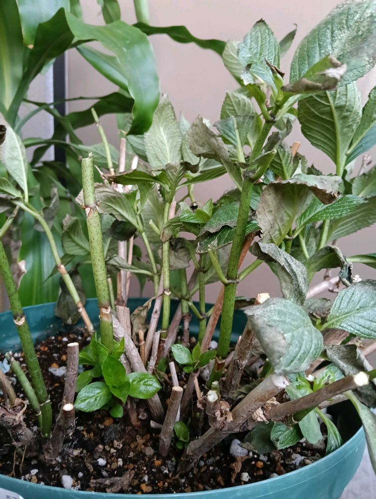 今年は紫陽花の葉がチリチリになって3株中、1株は枯れてしまい
