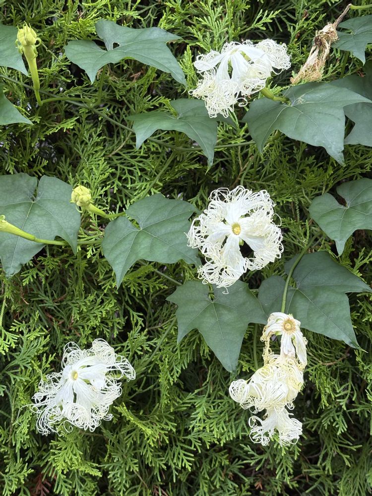 今年のカラスウリ花 見れるラストチャンスのおととい朝は大雨☔️で…午後に長女のいる沖縄に来ました〜今日 無事初孫が産まれました👶🍼9月の中旬までいる予定なので…お花の見頃は終わっていそうです