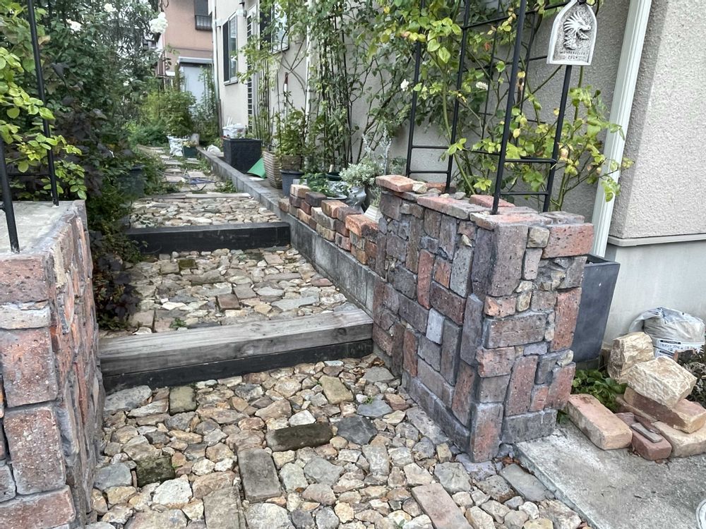 ②③今日はお休みだったので、午前中はアーチのレンガ貼り