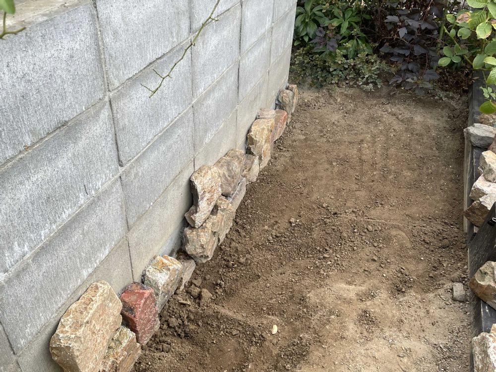 周りの土を削りとって、レンガと石を積んだ時により高さが出せるように👍