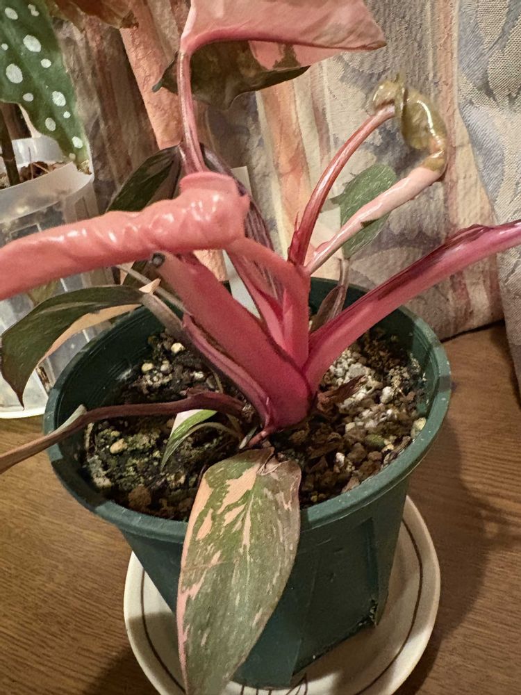フィロデンドロン ピンクプリンセスのピンクの葉がツヤツヤピカピカです🪴