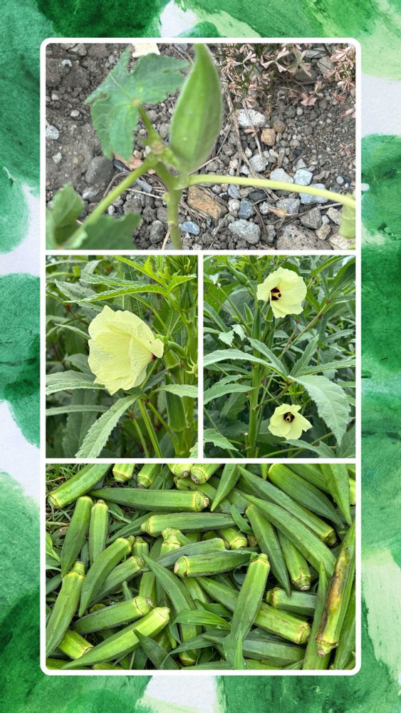 オクラって毎日収穫しないと次から次へと花が咲いて実がなるので 収穫に追われるようです…😅