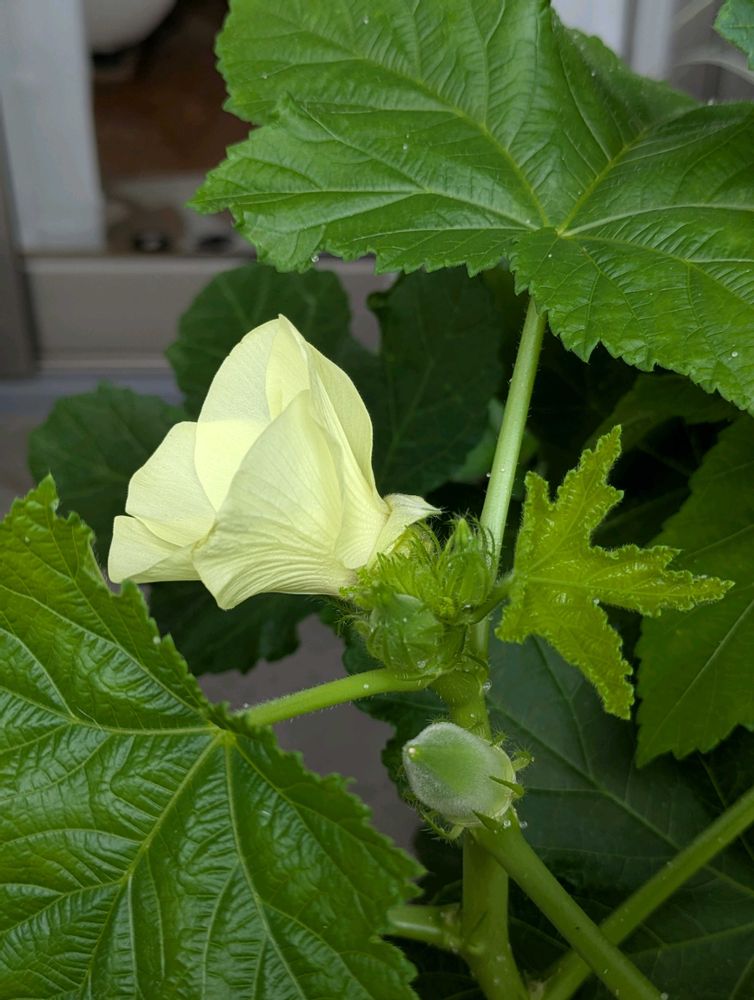 お花がキレイで暑さに強いので今年はオクラに挑戦してます💛👍💛