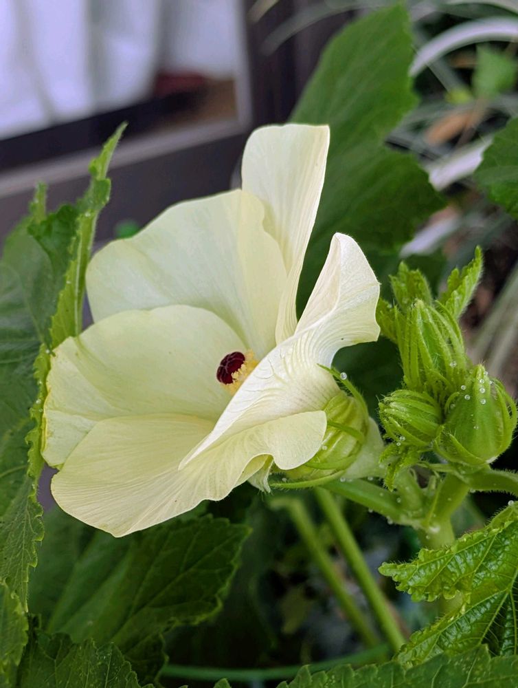 花オクラも大きくて立派な大輪で食べ応えありそう〜🌿🤭🌿