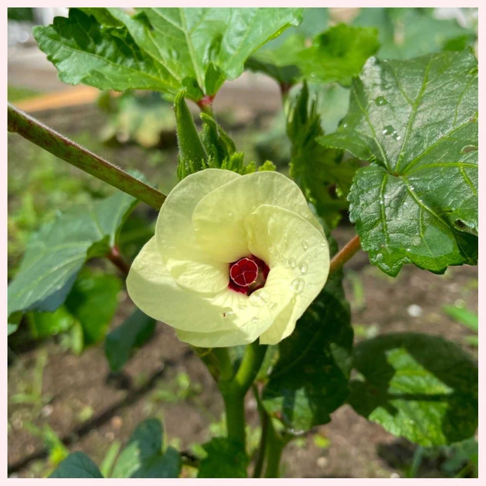 ②〜子供たちが植えたオクラ〜次々とお花が咲いて実も出来てます♬