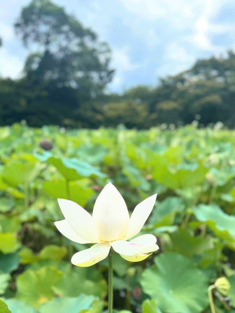 白のハスの花は、中心からの黄色のグラデーションが綺麗〜🤍💛