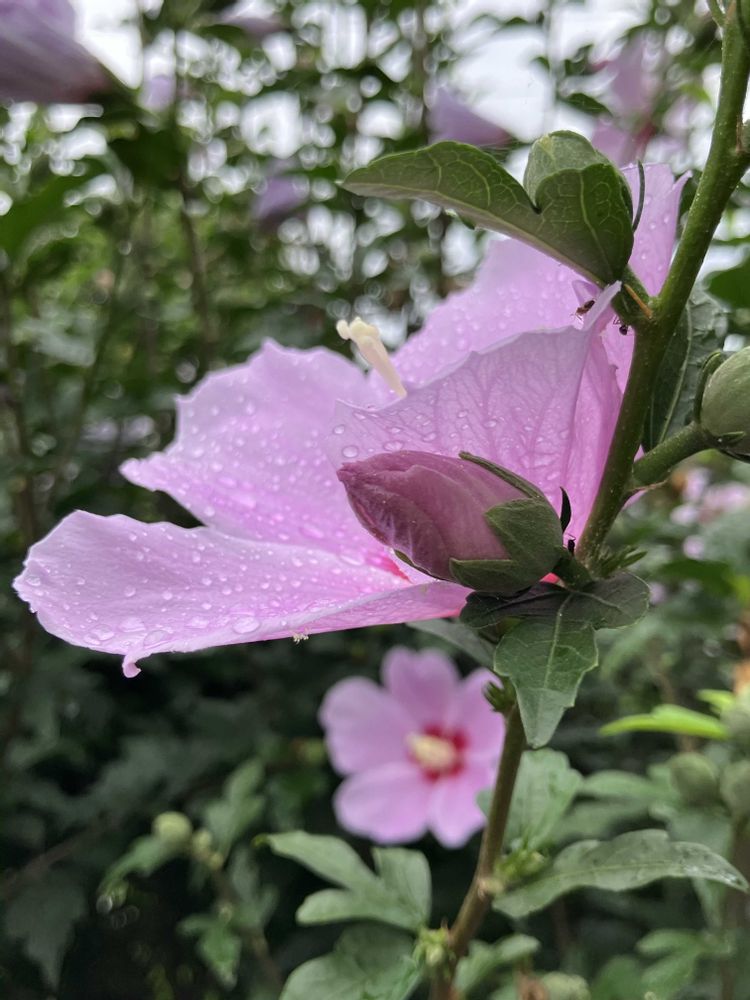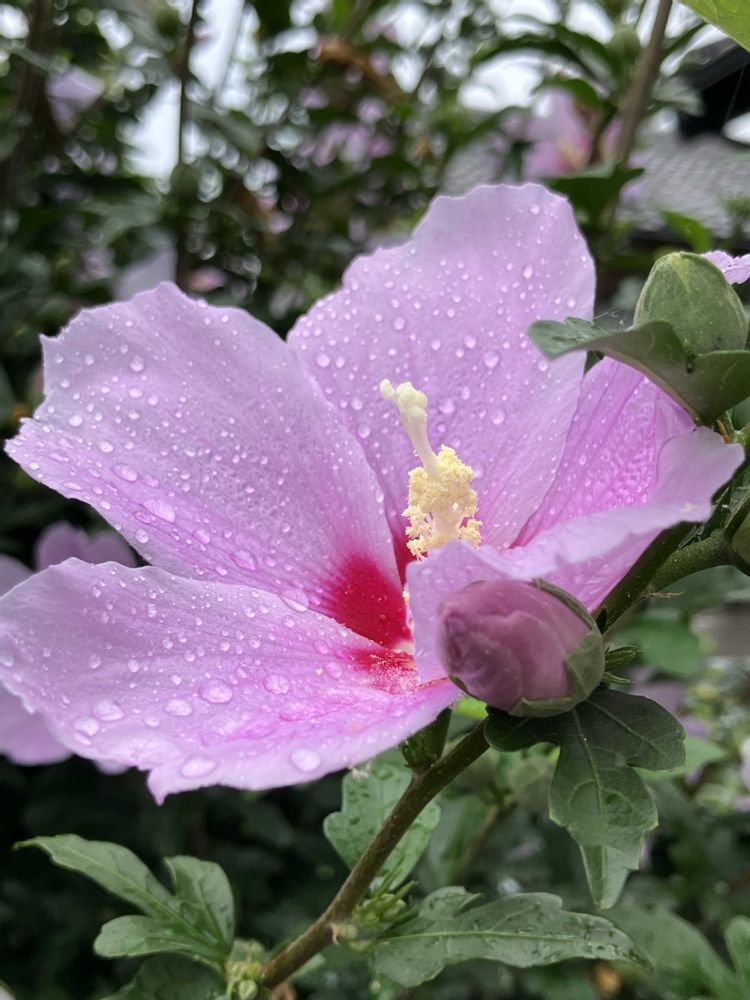 水滴がついたムクゲ、綺麗ですね🌸🌸