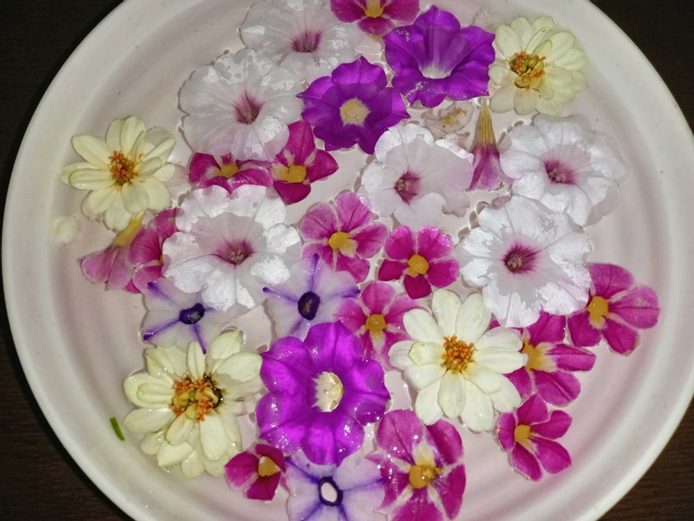 お花が好き♡,ジニアプロフュージョン チェリーバイカラー,花手水の投稿画像